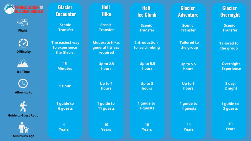 Check out our handy comparison to see which Franz Josef Glacier experience is right for you!